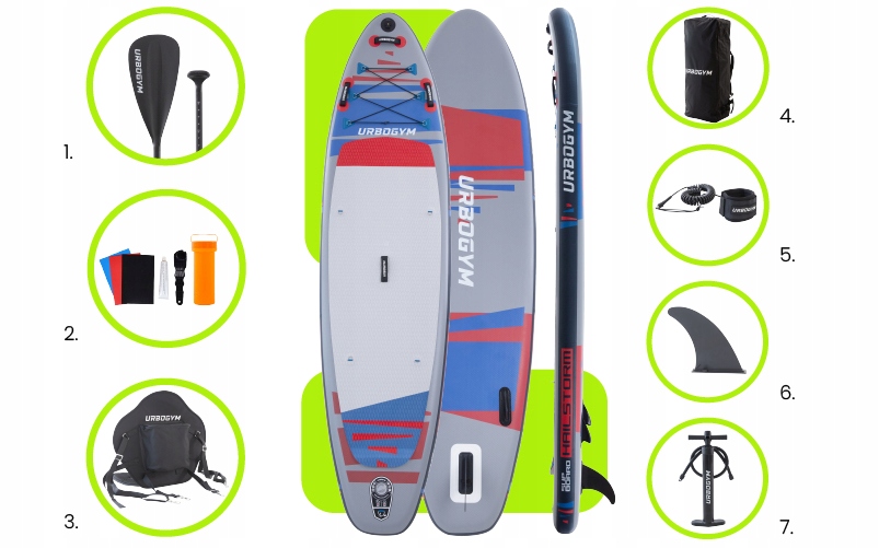 SUP-дошка Urbogym Hailstorm 320 – це високоякісний спортивний інвентар, оснащений необхідними аксесуарами, які допоможуть вам розпочати свою водну спортивну пригоду. Крім того, дошка Hailstorm виділяється на ринку завдяки кріпленню для екшн-камери GoPro. Це дозволяє вам записувати свої водні пригоди на дошці або робити фотографії з місць, куди ви не змогли б дістатися самостійно.
